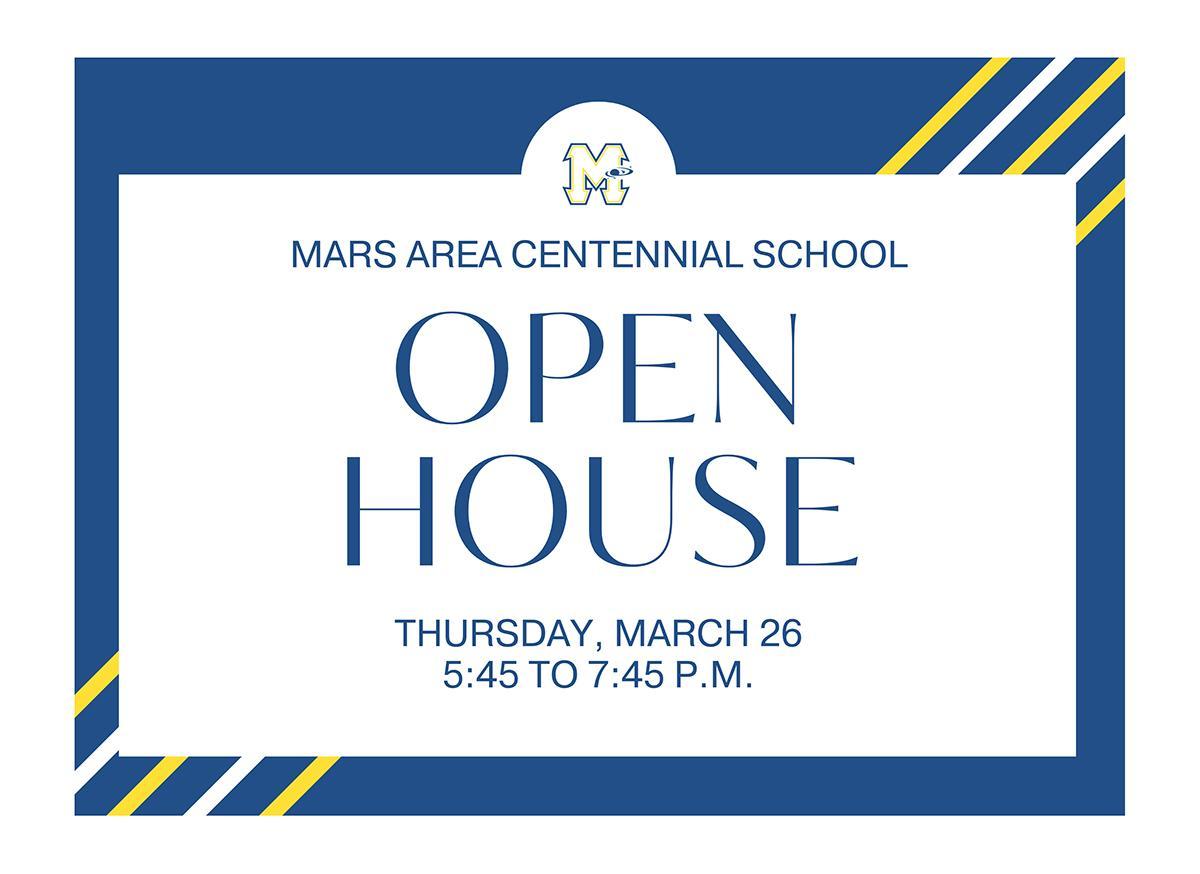 Mars Area Centennial School will offer its Spring Open House from 5:45 to 7:45 p.m. on Thursday, March 26.