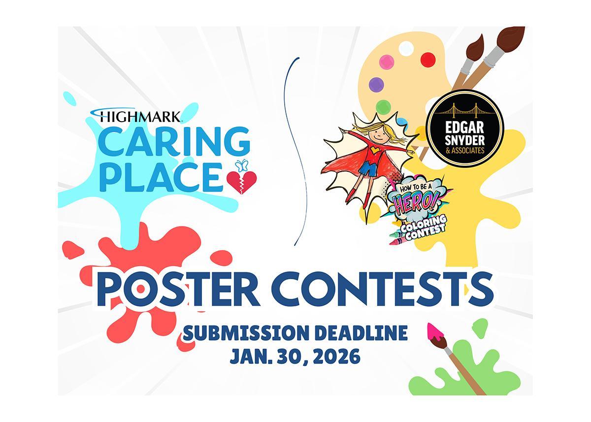 - Children’s Grief Poster Contest — The Highmark Caring Place Caring Team for Grieving Students Children’s Grief Poster Contest, open to students in Grades K-12, has the theme, “How Can You Support a Friend Who is Grieving?” Poster contest submissions must be hand-drawn on 11-by-17-inch paper (no computer-generated or digital images) and may be submitted through Friday, Jan. 30. (https://www.highmarkcaringplace.com/cp2/program/helpPrepare.shtml)