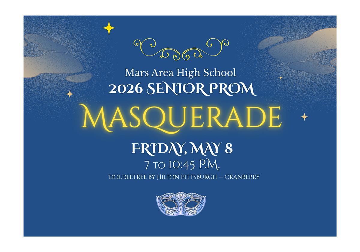 Mars Area High School will hold its 2026 Senior Prom from 7 to 10:45 p.m. on Friday, May 8, at the DoubleTree by Hilton Pittsburgh — Cranberry.