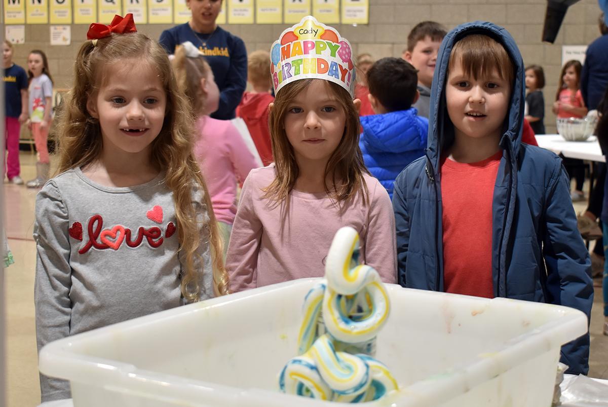 Students (Grades K-1) rotated between six stations focused on chemistry, physics and general science. Activities included the “Candle Vacuum Extravaganza,” “Diffusion” “Elephant Toothpaste,” “Mini Magic Storm,” “Oobleck,” and the “Science of Racing.”